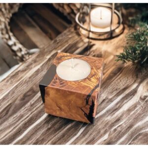 Teelichthalter aus Olivenholz und Epoxidharz – Handgefertigter Designwürfel