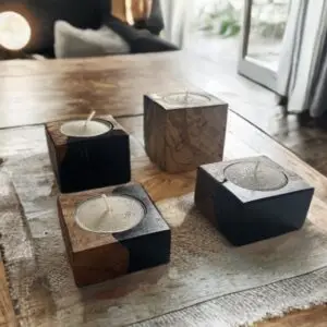 Olivenholz & Epoxid Teelichthalter – Handgefertigtes 4er-Set