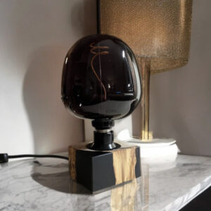 Designleuchte „Eos“ – Handgefertigt aus Olivenholz & schwarzem Epoxidharz
