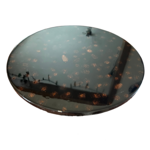 Epoxidharz Tischplatte Ø 50 cm – Schwarzes Resin mit Lärchenzapfen – Handgefertigtes Unikat